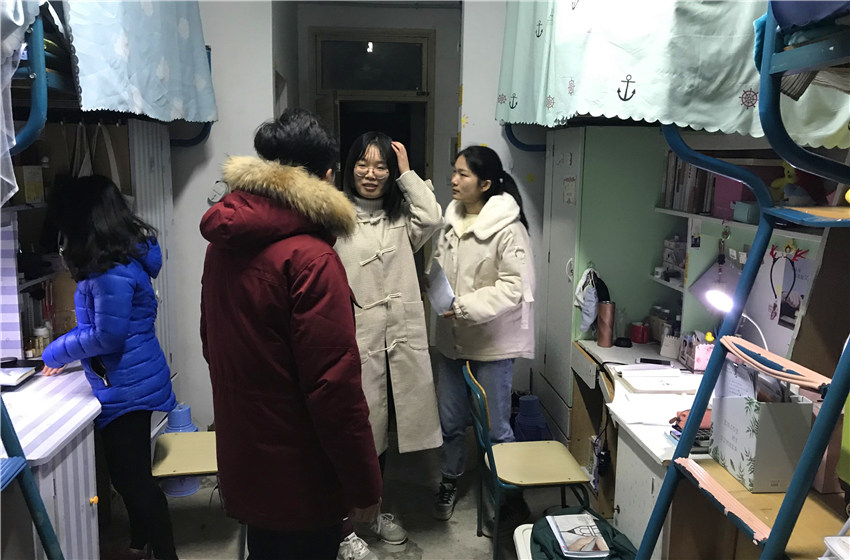 12月10日晚上,15法学、16行管辅导员桂彬带领班委、员工党员,前往各班级寝室,进行冬季用电安全大检查。