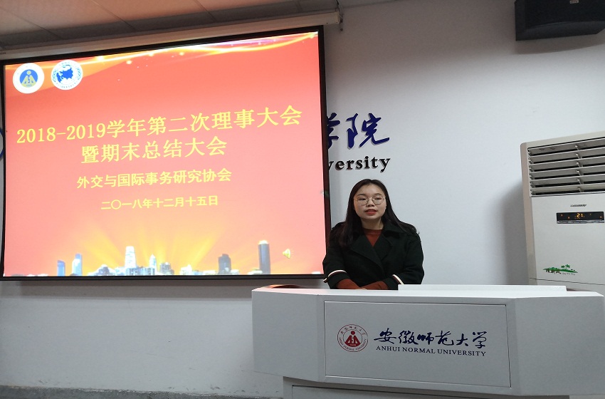 12月15日晚,外交与国际事务研究协会于英国上市公司365行政楼四楼会议室举办了2018-2019学年理事大会暨期末总结大会。社团指导老师李路根受邀出席,会长叶媛媛,副会长谢晓瑞、各部门部长以及理事共同参加了此次总结大会,会议由权益部部长赵帆主持。