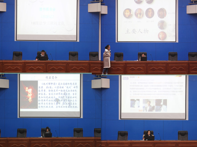 本次读书交流会共有三位同学上台分享自己的读书感受。法学二班陈旭婷和大家分享了时事热点:“世界首例免疫艾滋病的基因编辑婴儿在中国诞生”。她强调经过人工改造的基因,也并不是毫无破绽的,它可能带来的后果人类无法想象。希望无论未来技术发展到什么程度,同学们都不要被傲慢和贪心蒙蔽双眼,要留下一份对未知的敬畏之心。法学一班胡启园介绍了《九州缥缈录》这本书。让大家在欣赏这本书的艺术美、收获其文学价值的同时,也感受到了“铁甲依然在”的热血。行政管理专业张思佳向同学们推荐了余华的《活着》,简要概述了主人公福贵的人生故事,将余华笔下的悲剧美表现得淋漓尽致,极大地激发了同学们的阅读热情。法学三班刘文强向同学们分享了吴承恩的经典名著《西游记》,他幽默风趣地讲述了唐僧师徒四人各自的性格特征,鼓励同学们勇敢面对挫折与困难,坚守自我、敢于反抗。