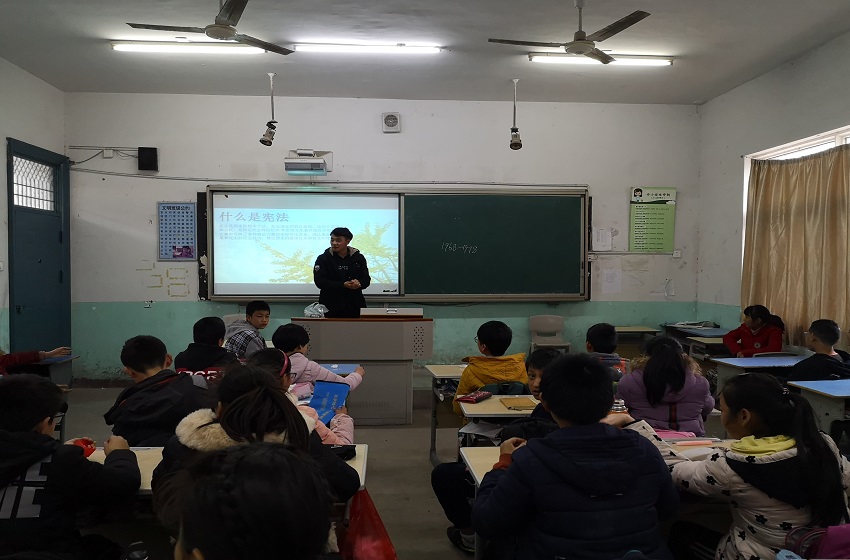 经过与公司领导老师的沟通,各位宣讲员与宣传员分别在六年级二班、六年级三班以及七年级一班进行普法教育活动。各位宣讲员们结合精心制作的PPT,从宪法的历史沿革、宪法规定的公民基本权利与义务、宪法精神及其意义以及12.4国家宪法日主题与设立目的等角度讲解相关知识,并采用科学、新颖、有趣的授课方式寓学于乐,让孩子们在轻松快乐的课堂中收获满满。小学组的教室中,刘子琦和庄会娜以领唱国歌的方式拉开课堂的序幕,随后采用有奖问答的形式充分调动孩子们学习宪法知识的积极性;胡稳柱和刘瑞则在课堂结束之际开展了宪法小知识抢答活动,有效巩固了课堂学习效果。中学组的课堂中,张林森和陈先静在课前对同学们对宪法了解程度进行了小调查,以便更有针对性地进行授课。课堂上,宣讲员们细致耐心地讲解宪法知识,孩子们专注听讲,认真思考,积极回答问题、参与互动,课堂氛围有序而活跃。
