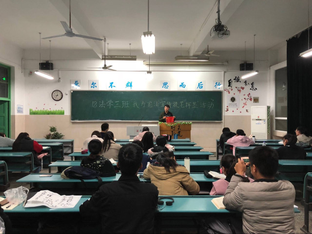11月27日晚,18级法学卓越司法班于行知楼2020404教室举行“我为宪法宣传提笔挥墨”活动。活动由团支书张林森主持。