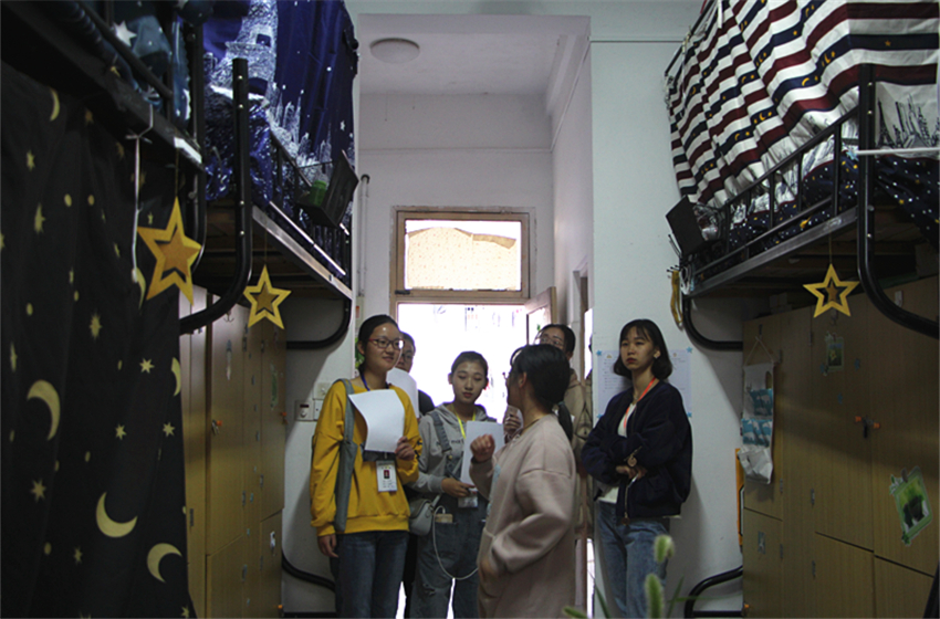 走进同学们精心布置的寝室,温馨舒适的气息扑面而来。在参赛的准备阶段中,他们广泛采集材料,利用彩灯、壁画、照片、书画、绿植等物品,充分展现各具特色的寝室文化与风格,小小的房间里充满着温暖与快乐。在评比过程中,寝室长向评委们认真地解说寝室的主题、公约与设计想法,展现出新生积极的参赛态度以及他们真挚的室友情谊。评委们不仅对新生的热情表示鼓励和赞赏,还对部分寝室的不足之处提出意见和建议,激励同学们积极打造更加美好的寝室文化氛围。