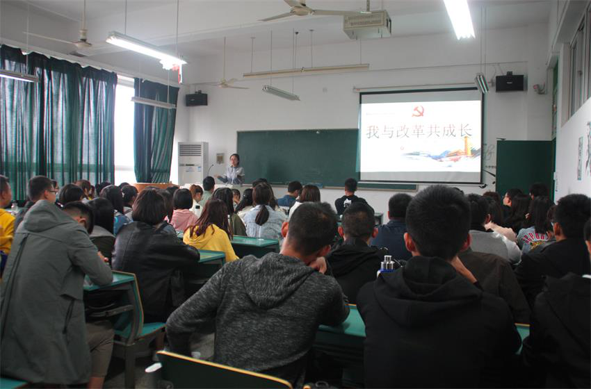 为深化青年员工对习近平新时代中国特色社会主义思想和党的十九大精神的学习理解,引导广大团员青年回顾四十年来我国取得的巨大成就。10月16日,2018级法学(专升本)团支部在行知楼2070309教室开展“我与改革共成长”主题团日活动,活动由团支部书记郑昉涛主持,全体同学参加。