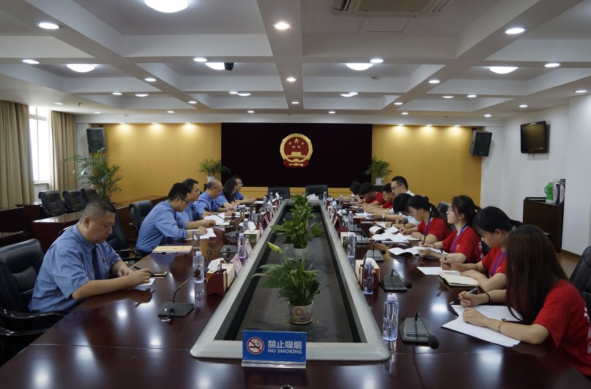 弋江区人民检察院副检察长、诉讼监督部部长郭启红对于团队师生表示了热烈的欢迎并肯定了此次实践主题的意义,声声欢迎和句句鼓励消解了同学们的紧张感。队长李雨晴进行团队自我介绍后,诉讼监督部副部长刘振球带领大家参观公益诉讼展板并向团队师生介绍本院办理的公益诉讼经典案例,讲述其办案过程中的酸甜苦辣。