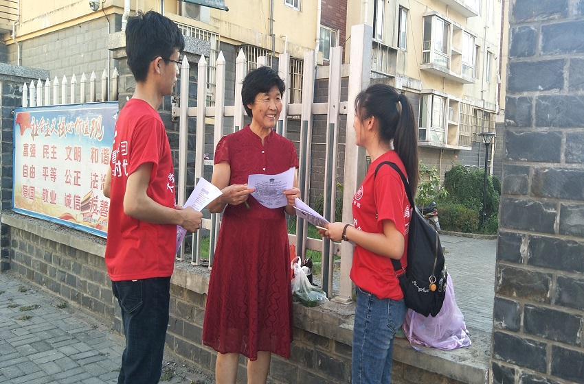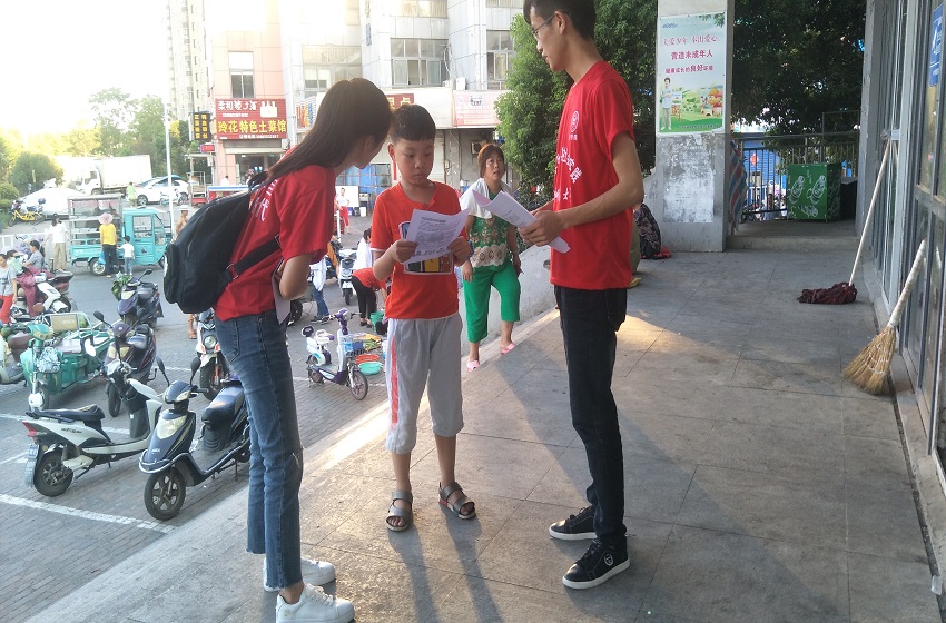 团队队长叶媛媛顶着烈日带领团队成员来到浅湾小区,团队分为两组分别行动。团队通过发放宣传单的方式进行宪法宣讲,对象有老人,孩子、青年人等。宣讲人员首先进行自我介绍,然后从什么是宪法、宪法的作用以及宪法与其他法律的关系等方面讲解,路上的行人都很认真的听着宣讲人员讲解有关宪法的知识,有的行人还和宣讲人员形成良好的互动,对宣讲人员的讲解提出了一系列的问题。