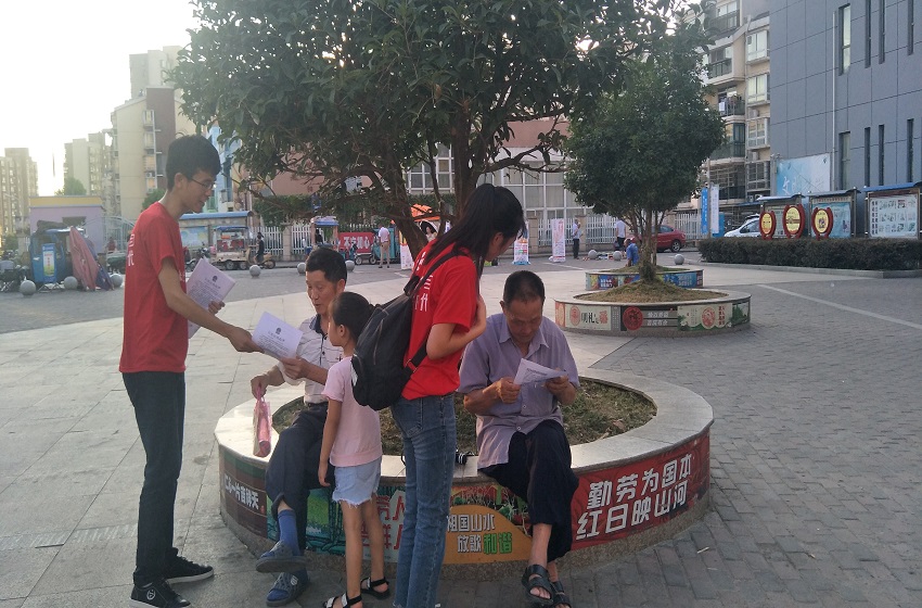 宣讲人员针对路边休闲的人进行宣讲,他们很认真的看着宣传单上面的内容,并且对宣讲人员的讲解进行了提问,宣讲人员很耐心的解答了他们的疑惑。