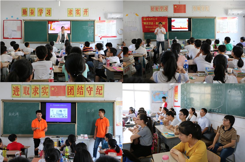 法治课堂暑期社会实践活动主要以员工授课的方式进行,邱浩、冷洪志、田浩与谢晓瑞分别给稼祥中学留守儿童中心七(1)班、七(2)班、七(3)班的孩子进行未成年人普法教育,围绕校园安全风险、未成年人的犯罪预防以及未成年人的权益保护三个方面进行讲解。主讲人根据PPT,将理论与案例相结合,增强了员工对讲解内容的理解。李路根简要介绍了《中华人民共和国宪法》的地位和作用。在整个讲解过程中,孩子们与宣讲人员形成了良好的互动,对于孩子们的疑问,宣讲人员都进行了耐心的解答。