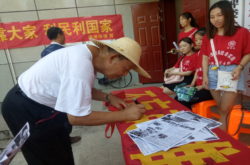 7月19日,队长李芳芳带领所有成员早早的来到了牌楼社区。在社区工作人员的帮助下,团队成员很快在社区中搭起了展示台,不一会儿,就吸引了很多人前来围观。团队成员们就借此机会一一耐心的为他们科普英雄烈士保护法的相关知识。他们也感到收获很多,因为他们之前没有接触这方面的知识,对国家的英雄烈士了解也不是很多。他们表示今后会更加关注这方面的新闻,绝不会做出有损国家英雄烈士名誉的事情。