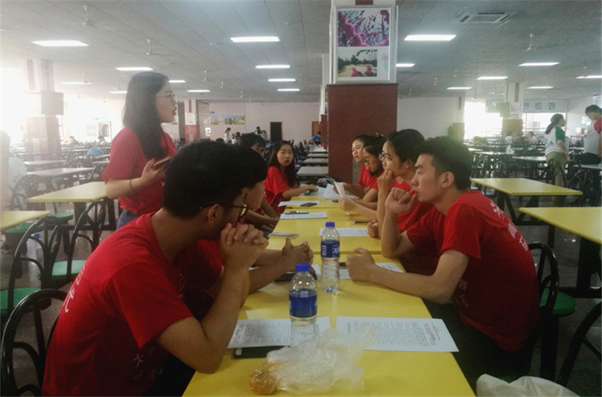 7月16日上午,实践团队于公司二食堂召开会议,指导老师冯万勇出席会议,会议由队长何静怡主持,全体队员参与其中。何静怡阐述安全的重要性,指出队员们进行实践时应注意责任分工。指导老师冯万勇着重强调安全问题,让队员们注意暑热;强调与老人交流时要注意交谈方式,认真聆听,并做好记录;明确实践目的,时刻围绕实践主题展开活动。