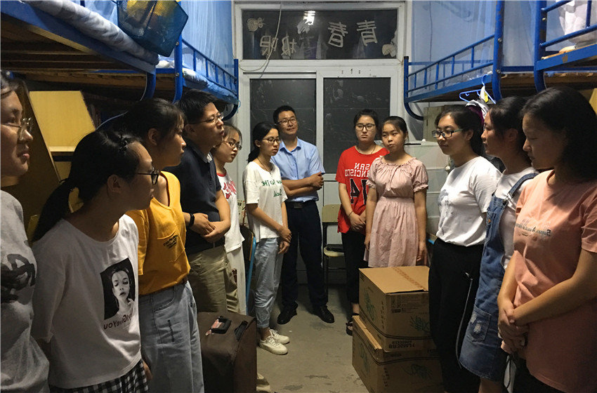 晚上,院领导一席人又深入2016级、2017级卓越司法班实习员工寝室,进行交流和慰问。院领导们详细询问了同学们在实习和生活上的困难,以及实习进展和心得体会,为同学们发放了慰问品。最后,院领导对实习同学在实习单位的表现给予肯定,希望实习同学坚定信心,保持恒心,学会用心,提醒暑期在校实习要照顾好自己、互相帮助,同时要提高安全意识,确保人身和财产安全,以良好的状态在公司度过一个充实而欢乐的暑假生活。