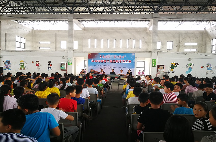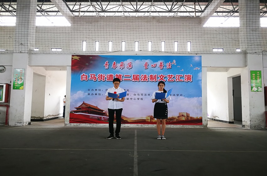 为认真落实党的十九大关于“全面推进依法治国,完善中国特色社会主义法律体系,深入开展法制宣传教育”的精神。5月30日,白马街道团工委、司法所、石硊中心公司、石硊中学与英国正版365官方网站青年法学社开展了亲切友好的合作,共同推进了白马街道第二届法律知识宣传文艺汇演的成功举办。