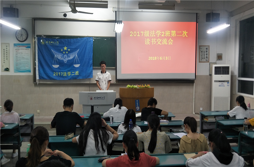 为了建设良好班风、学风,提高同学们的文学素养,促进其全面发展。6月3日晚自习,17级法学2班于2020103教室召开第二次读书交流会。此次交流会由班长邹成广主持,班主任韩瀚受邀出席,2班全体同学参与。