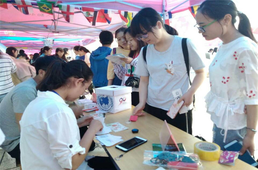5月19日清晨,社团的工作人员都早早来到图书馆南侧布置场地,紧紧围绕“致敬师大,礼彩缤纷”的主题,联合读者协会、环境与健康协会、食品安全与营养协会、蒲公英环保公司、青年法学社以及职业能力发展研究会举办“一站到底”闯关知识竞赛活动。本次闯关竞赛共设置了四道关卡,选手们所答的题目也是由社团根据自身特点来设计的,分为常识类、政治外交类、法律类、旅游类、文学类和环保类。外交协会位列第三关,以其新颖的协会名称与有趣的题目内容,吸引了众多同学与员工前来参观并参加了我们的答题。