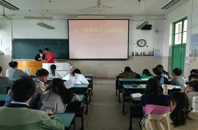 4月25日上午11:00,2017级行政管理专业于行知楼2020505教室召开了五一假期离校安全主题班会,会议由辅导员赵义丹主持,班级全体同学参与。
