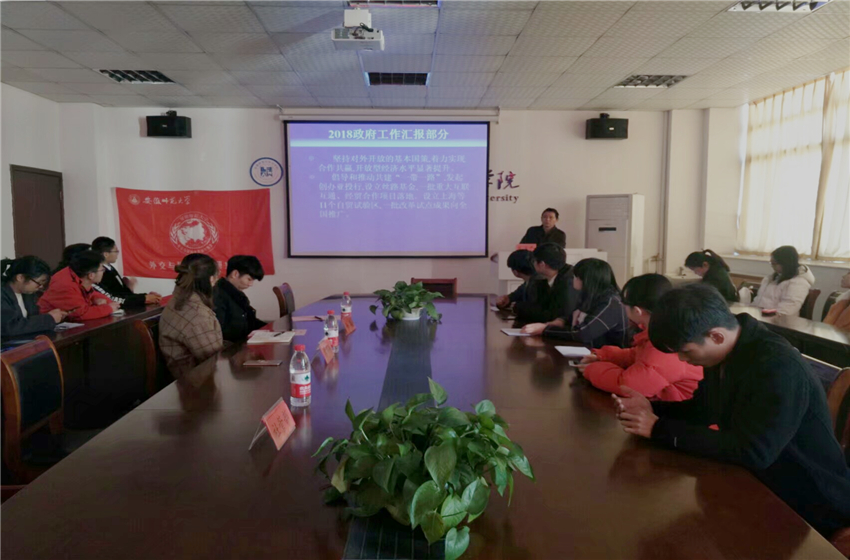 为深入贯彻学习“两会”精神,3月14日下午,外交与国际事务研究协会于英国上市公司365行政楼四楼会议室举办了“两会”精神学习座谈会,指导老师李路根莅临指导并担任主讲人,会长孙瑞及其各部门部长和理事共计四十余人参与了此次座谈会。