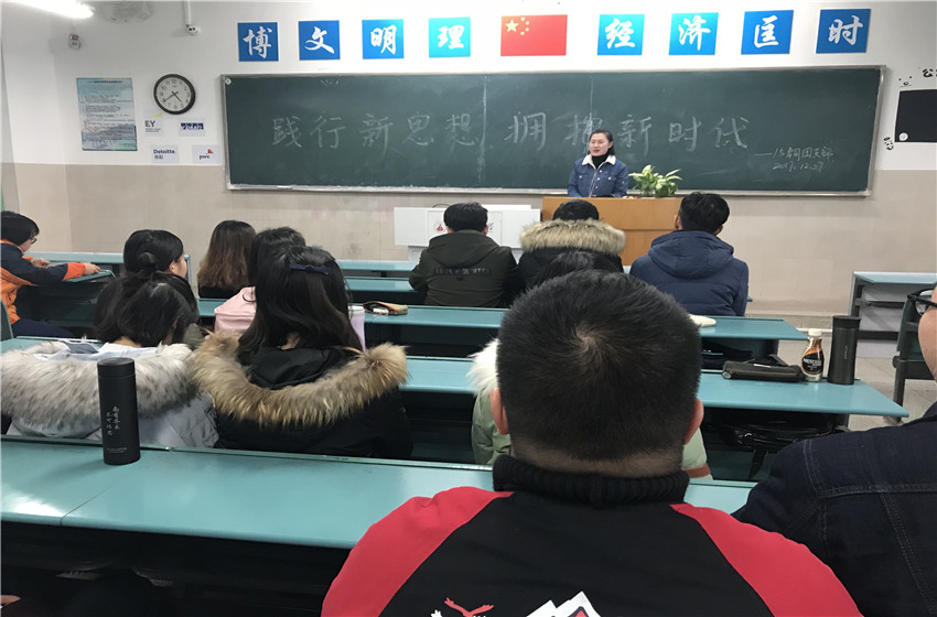 12月27日,15卓司召开“践行新思想、拥抱新时代”主题组织生活会,组织团员集中学习党的十九大精神,本次组织生活会由15卓司团支书吴佳佳主持,并邀请15卓司辅导员王虹圆出席,班级全体同学参与。