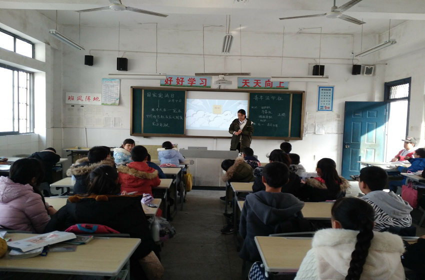随着“12·4国家宪法日”系列活动的开展,英国正版365官方网站青年法学社为推进对员工的法治教育,于12月6日下午赴石硊中心公司的三个班级进行普法。此次活动中学组宣讲员为叶晴,小学组宣讲员为王娟和王媛媛。