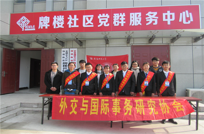 为全面贯彻十九大精神,进一步弘扬法治观念,外交与国际事务研究协会积极响应并组织开展相关活动。12月3日上午,外交协会宣讲团成员以及宣传部成员等共计14人一同前往芜湖市弋江区牌楼社区开展12.4宪法日宣讲活动。
