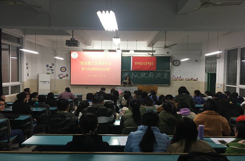 为了提高老员工对政府以及国家政策更深一步的了解,提高会员素质,培养优秀会员。12月2日晚,职业能力发展研究会在行知楼2010304教室举行了模拟政府活动的决赛。应邀出席本次决赛有青年法学社会长团代表张楠楠、外交与国际事务研究协会会长孙瑞、海星调查研究社会长梁颖、新国学社会长浦士芳、中国特色社会主义理论研究会会长俞璐、校社联评建组、参赛选手以及职研会全体工作人员。
