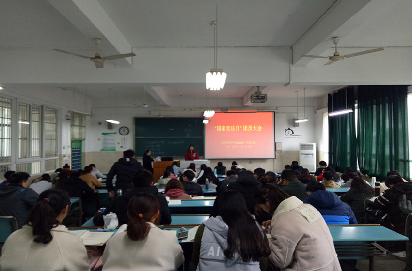 “12.4”国家宪法日来临之际,为引导同学深入学习十九大中关于全面依法治国的重要论述,加强班级团员的的宪法意识和法治观念,16级法学2班积极响应公司团委号召,于11月30日上午在行知楼2010309教室,召开以国家宪法日为主题的全体团员大会,会议由团支书张博雪主持,班级全体团员共同参加。