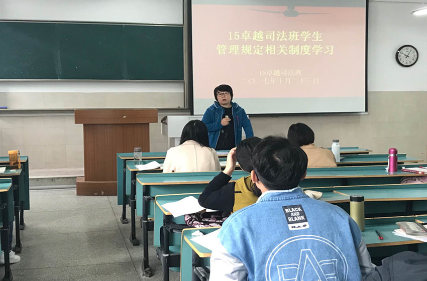 10月23日上午,15卓越司法班全体同学在2020403教室共同学习公司新实施的管理规定及相关制度,主要对《英国正版365官方网站本科生素质综合测评办法(试行)》进行学习。
