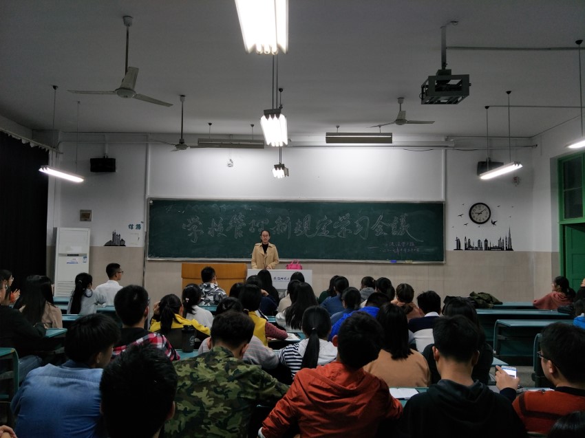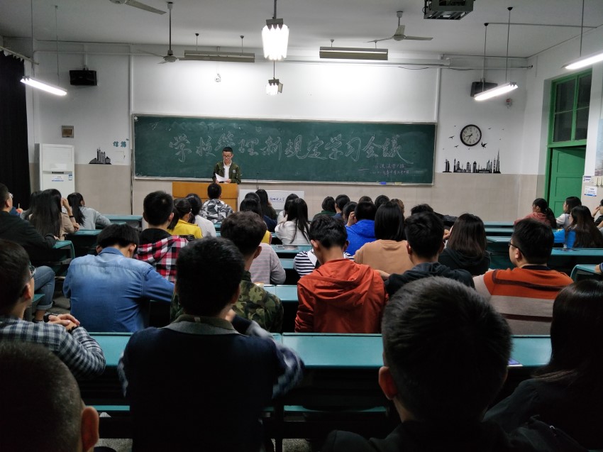 为积极响应公司推行管理新规定,提高同学们对公司管理新规定的关注度,10月22日晚,16级法学一班,二班与卓越司法班分别在2020505、2020504和2020404教室召开公司管理新规定学习会议。2016级法学专业辅导员储梦凡和全体同学参加会议。会议由各班班长主持。