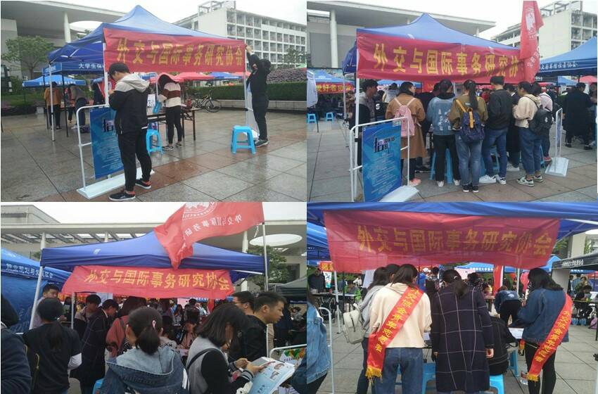 为普及外交与国际知识,推广模拟联合国活动,扩大当代老员工的国际视野,外交与国际事务研究协会于10月14日和15日在花津校区西门前广场开展2017年社团招新活动。会长孙瑞,各部门部长、副部长紧密合作,促进招新工作圆满成功。