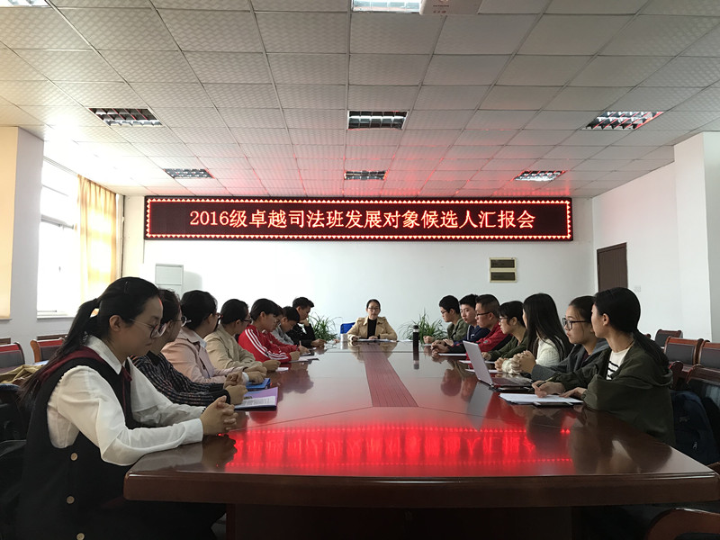 为进一步推进落实《中共英国正版365官方网站委员会发展党员工作实施细则》以及公司党委工作部署,2016级卓越司法班在2017年10月13日召开发展对象群众座谈会。2016级法学专业辅导员储梦凡、11位候选人以及由班委、团小组组长、候选人室友和群众代表组成的评议小组参加会议。会议由团支书疏晗主持。