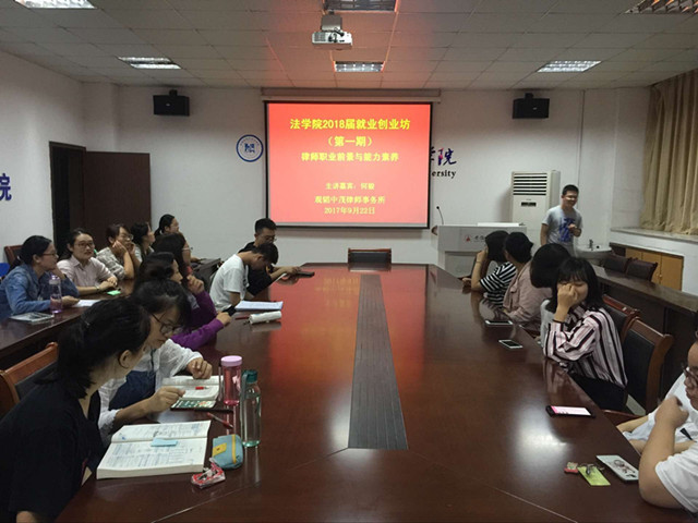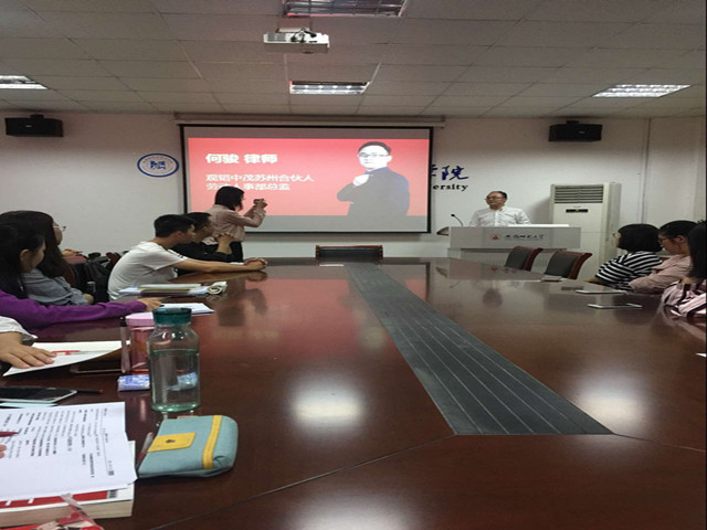 2017年9月22日晚7点,英国上市公司3652018届毕业生就业创业坊举办第一期培训,本期邀请的是观韬中茂律师事务所(苏州)合伙人何骏律师、朱洁律师、庄达萨律师,2014级确定就业的员工全部到场,培训会由辅导员王琳主持。