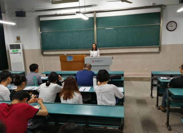 选拔开始前,通过院辩论队一轮面试的57名同学准时到达,井然有序的进场等候面试。面试开始前,辩论队工作人员向同学们宣布了选拔内容。选拔方式为2分钟的即兴演说,需要同学们从讲述对法学专业的认识及未来的规划或谈一谈对于时事热点的观点以及根据辩题证明观点等三个方向选择一个方向阐述自己的观点。面试现场同学们保持安静,努力思考,积极为发言做准备。面试过程中,同学们条理清晰地阐述了自己的观点,一展17级法学新生大方自信、意气风发的风貌。伴随着面试的推进,同学们的发言愈来愈成熟和精彩,侃侃而谈更是引来面试官和同学们的阵阵掌声。面试结束后,陆在春老师总结了今天的面试,表扬了同学们的优秀表现并对如何辩论进行了指导。同学们认真聆听,并仔细做好笔记。