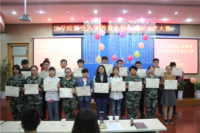 比赛分为上场,中场和下场。同学们各尽其长,认真卖力地演出。上场演出中最发人深省的当属由行管504寝室的同学们表演的小品《你吸烟不》。504寝室的同学们以幽默的形式对同学们进行了教育引导。吸烟有害健康,要学会对吸烟说不。在比赛进行至中场时,由辅导员陈兴宇和法学809寝室的同学们合唱的歌曲《精忠报国》受到同学们的热烈欢迎。气势磅礴的歌曲与同学们朝气蓬勃的笑容交相辉映。下场表演中歌曲《你还要我怎样》惊艳全场,同学们打着拍子,沉醉在优美的歌声之中。除此之外1101寝室同学金邑表演的音乐武术《刀影我心,拔剑何从》和512寝室表演的歌曲《北京东路的日子》等众多节目都广受同学们的喜爱。开始的开始我们都是孩子,最后的最后渴望变成天使。我们以最稚嫩的模样来到师大,未来却将会以最优秀的方式从师大毕业。此次比赛采用QQ投票群奖励机制,通过同学们的网络评选,评出奖项。教官田浩、员工会工作人员及团委特邀嘉宾为同学们颁奖并合影。
