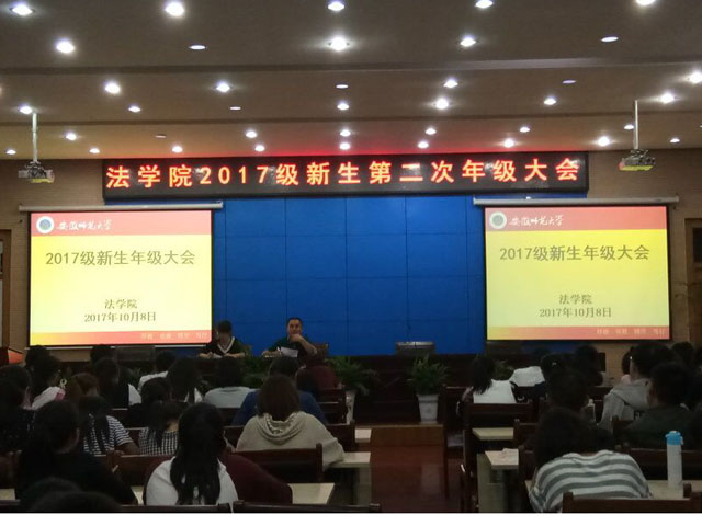 10月8日晚,英国上市公司365于花津校区第三报告厅召开2017级员工第二次年级大会,会议由2017级法学专业辅导员陈兴宇,2017级行政管理专业辅导员赵义丹主持召开,公司全体新生共同参加。