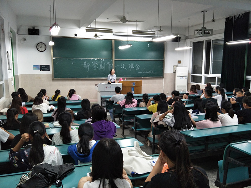 9月3号晚,2016级法学专业在行知楼2020103、2020104教室召开新学期的第一次班会,会议由辅导员储梦凡主持。