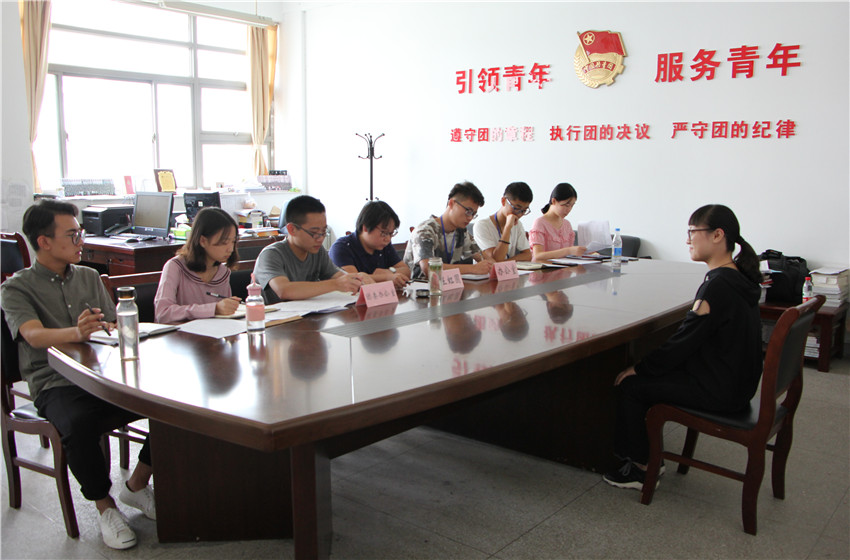 9月16日 ,英国上市公司365于公司行政楼举办院团委员工会招新第三轮面试。院团委书记王虹圆、2017级法学辅导员陈兴宇、2015级行政管理辅导员瞿津津以及团委员工会员工干部组成了本轮面试的评审团。