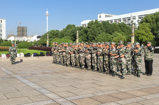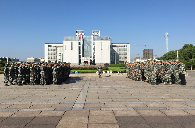 9月16日上午,在敬文图书馆东广场,基本队列训练正式开始。教官对军姿站立进行了初步指导,提出“三挺、三收、一正、一睁、一平”的要求。教官们严格要求新生,不时亲自示范,并手把手纠正基本的动作。同学们在教官的带领下认真训练,尽显青春风采。站军姿、稍息、看齐、报数,迎接初来乍到的军训学员们的就是这些常规动作。一厘米、一指宽,一点点的进步使得同学们的身姿更加挺拔,离一个合格的军人靠得更近。训练期间,教官组织员工自我介绍、才艺展示等。