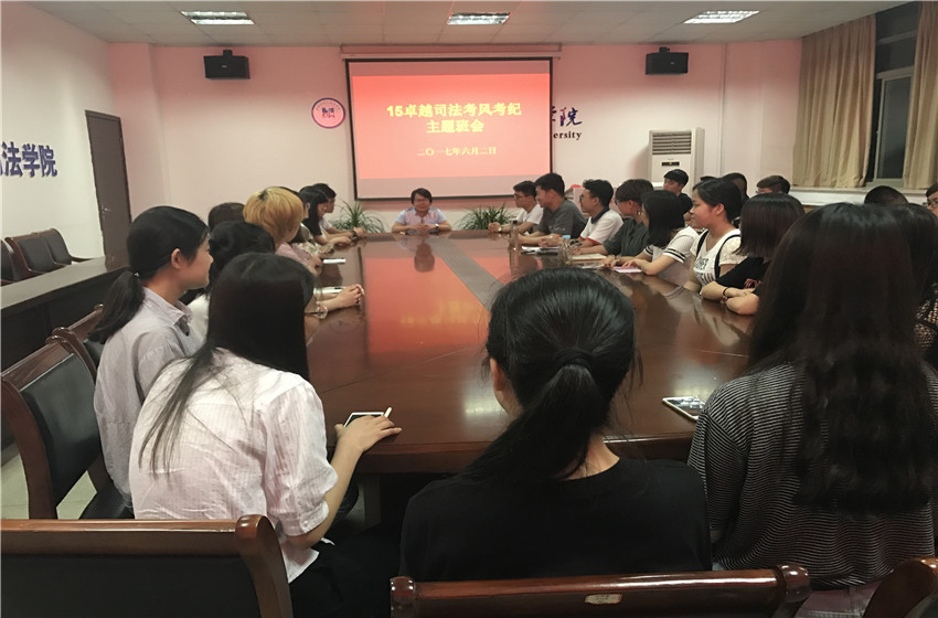 在期末考试与四六级英语考试来临之际,为了端正考风、严肃考纪,提高同学们的复习意识与热情,6月2日,15卓越司法班召开考风考纪教育主题班会。会议由15卓越司法班辅导员王虹圆主持,15卓越司法班全体同学出席参加。