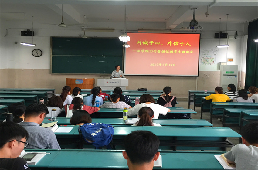 车无辕而不行,人无信而不立。5月19日下午,15级行政管理专业在行知楼2020303教室开展诚信教育主题班会。此次班会由辅导员瞿津津主持,全体行管同学参加。