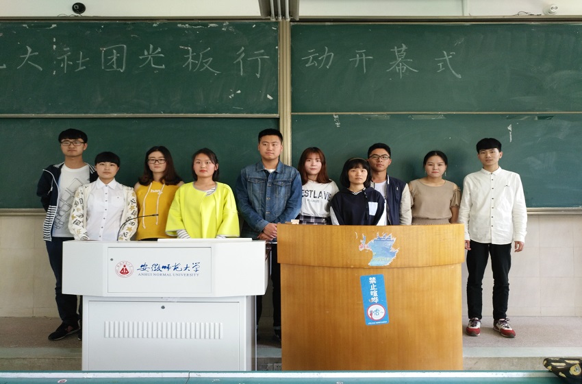 启动仪式,良好开端。5月9日,九大社团“光板行动”开幕仪式在行知楼2020103隆重举行,校社联主席刘朝武受邀出席,各社团代表以及部分理事代表参加开幕式。主持人基本情况介绍完毕后,武术与体育舞蹈协会代表介绍活动具体流程及安排,并对各社团任务进行详细分工。外交协会实践部理事杨静文代表发言,她生动阐述志愿精神的概念以及个人感受,强调应该不断提升思想,将志愿精神代代传承。校社联主席刘朝武进行总结发言,他指出志愿活动的深刻意义,以央视节目“等着我”中“寻找安师大108位教师”为例,引申出公司当前优良的志愿服务背景。同时,他对志愿活动做出展望,希望大家可以继承优良传统,保证成果,并积极做好宣传工作,努力促使志愿服务常态化、规范化。