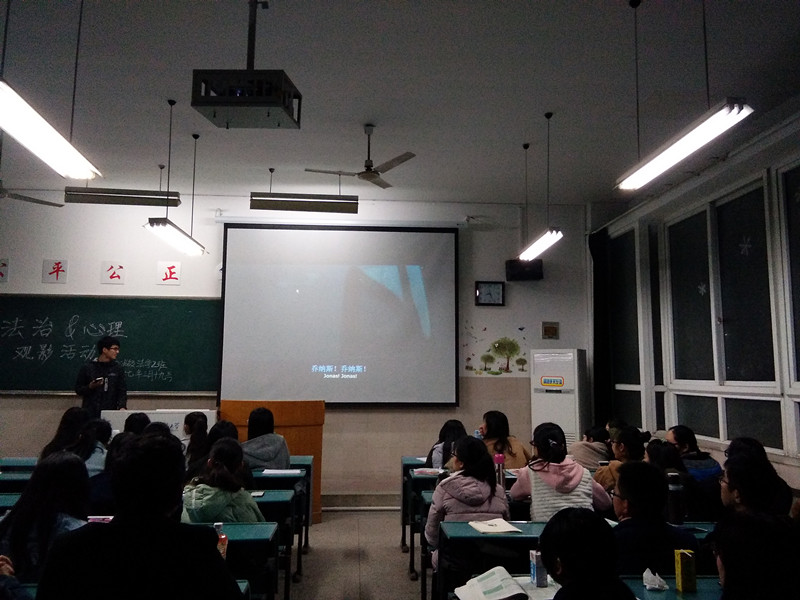 为了让同学们对法律及法律相关职业等有更加直观形象的了解,同时进一步丰富、充实大家的大学课余生活,16法学2班特于3月19日晚在行知楼2020504教室组织开展了法治电影观赏讨论活动,本活动主要由心理委员主持,班级全体成员共同积极参与。