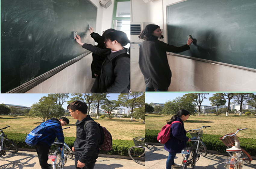 3月2日,15卓司的同学们以团小组为单位,分成四组开展“爱我师大,清洁校园”活动,同学们分别到一号楼擦黑板、清洁楼内小广告,同学们拿出了自备的垃圾袋与抹布,打扫教学楼与走廊卫生,另外两组同学们将一号楼门口原本凌乱的自行车摆放整齐,并将散落的垃圾清理干净,每个团小组成员都认真完成分配的任务,使原本拥挤的教学楼和走廊变得整洁有序,为校园清洁做出自己的绵薄之力。