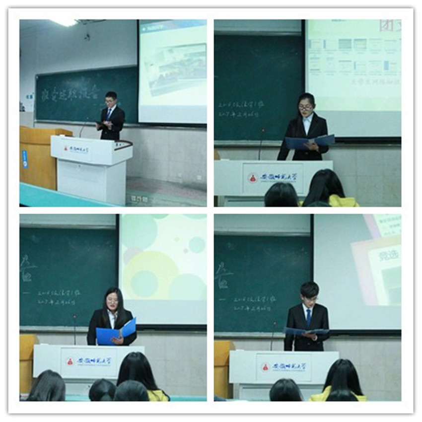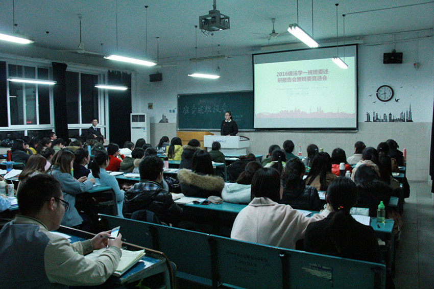 2017年2月26日晚,2016级法学一班于2020505教室成功开展班委述职报告暨班委改选活动。此次活动由班长余珂睿主持,16级法学专业辅导员储梦凡老师及16级法学一班全体成员参加。