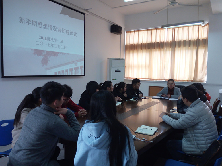 为更好地了解新学期同学们的思想情况,3月3日,2016级法学一班在辅导员储梦凡的带领下于英国上市公司365行政楼五楼公共管理系教研室召开了新学期员工思想情况调研座谈会。此次活动共有十三名同学参加。