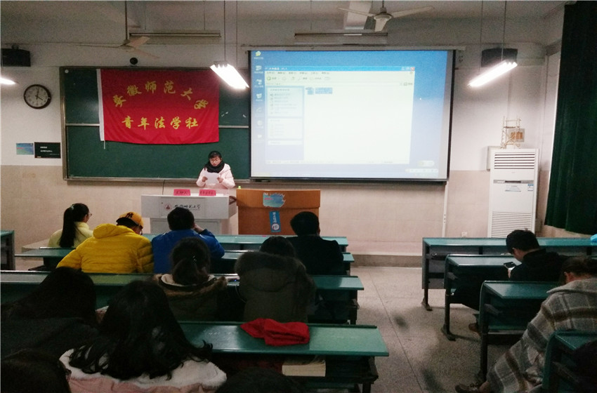 为增加本社会员学习法律的兴趣,提高会员法律素养,青年法学社本着“以法律服务社会,以实践促进学习”的宗旨,响应校社联号召,于2月22日下午在行知楼开展会员观影培训活动。本次活动由青年法学社公关部的侯懿祠主持。