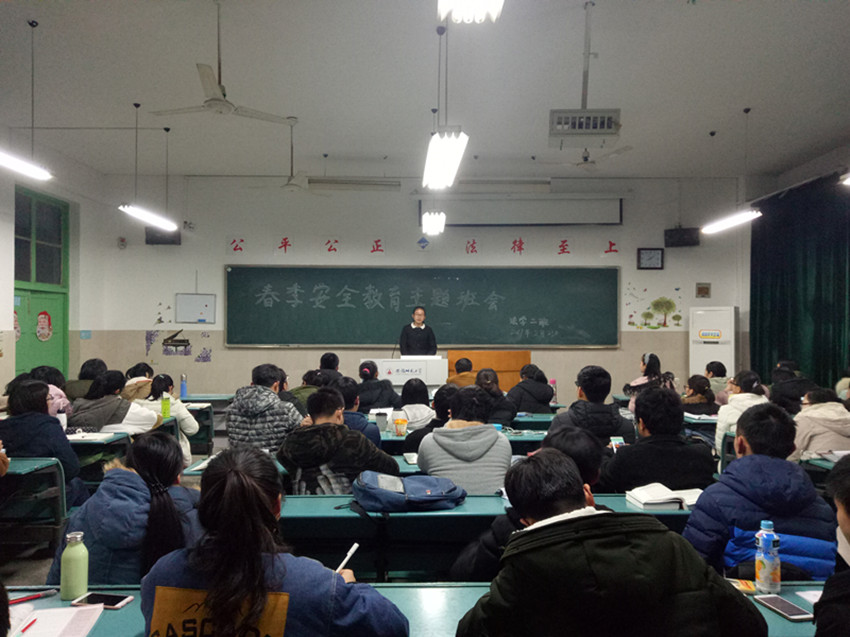 冬去春来,万物复苏。春季是员工安全事件的多发期。2月23日晚,2016级法学一班、二班及卓越司法班分别在2020505、2020504、2020404教室召开了春季安全教育主题班会。此次班会由辅导员储梦凡主持,2016级法学专业全体同学参加。