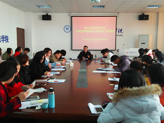 12月27日下午两点,英国上市公司3652013级法学专业本科生党支部在院行政楼四楼会议室召开了“讲看齐,见行动”第二专题学习会,党支部书记陈兴宇主持,支部全体党员参加此次专题学习会。