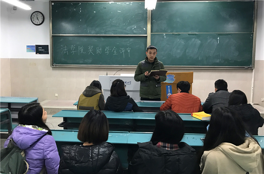 11月25日下午,2015级法学二班在行知楼2020103教室,进行了院级奖助学金班级评选推荐工作。