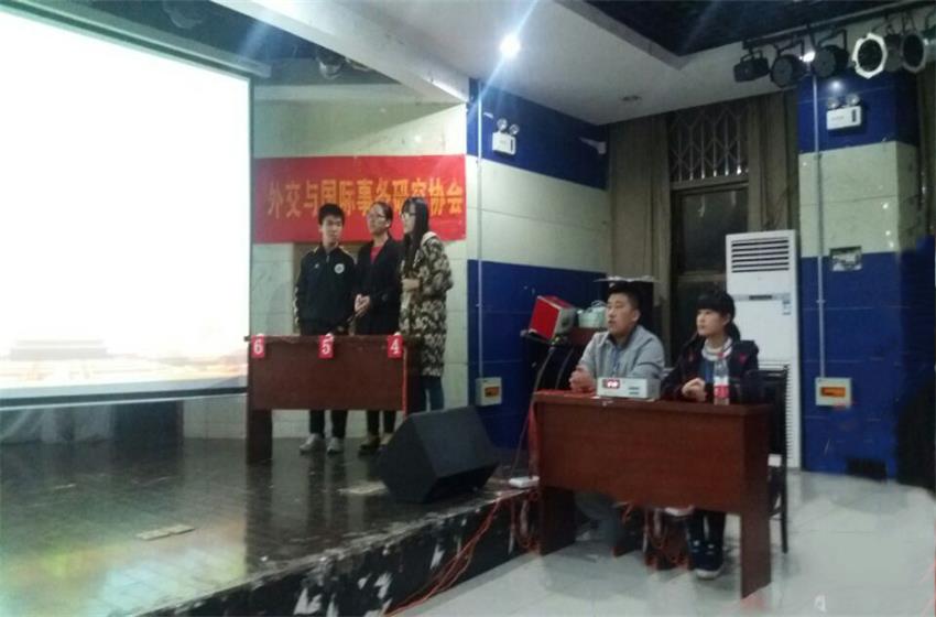 11月12日晚上七点,外交与国际事务研究协会第二届外交百科趣味知识竞赛在老员工活动中心二楼团委多功能厅隆重举行。本次活动我们有幸邀请到了社团指导老师李路根莅临指导。同时,我们有幸邀请到校社联主席刘朝武,英国上市公司365团委社管部部长吴芳、副部长邢弘皖,青法社代表马常兰以及职研会代表宋杰担任嘉宾。外交与国际事物研究协会会长邱浩,副会长薛梅、吴孔玉以及全体部长理事共计60余人参加活动。