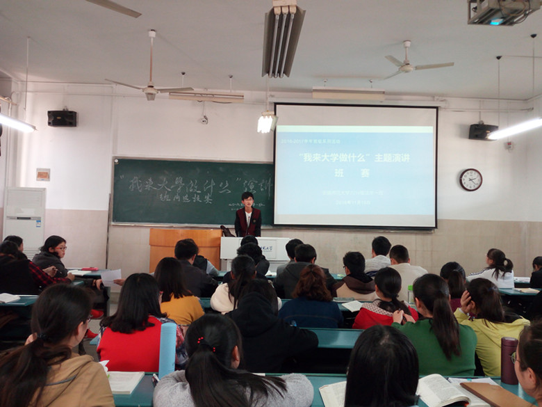 11月15日,在思修课授课教师王艳老师的指导下,2016级法学一班于2020505教室进行“我来大学干什么”主题演讲班内选拔赛。此次活动由组织委员梁海峰主持,思修课代课老师赵老师、助教夏老师以及16级法学一班全体同学参加。