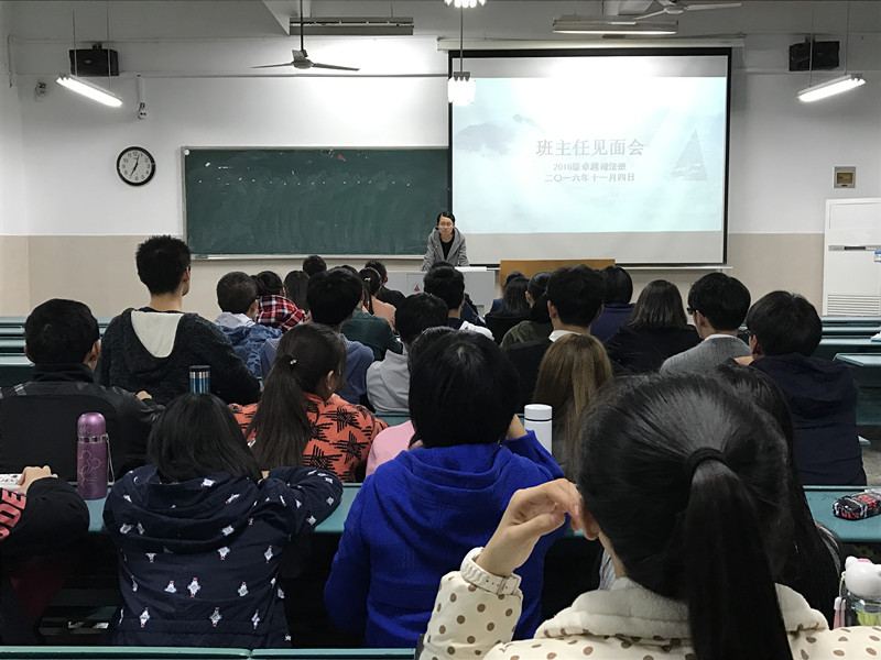 11月2日晚,2016级卓越司法实验班在2020404教室召开班主任见面会,班主任李晓婧老师应邀出席。本次见面会由辅导员储梦凡老师主持。