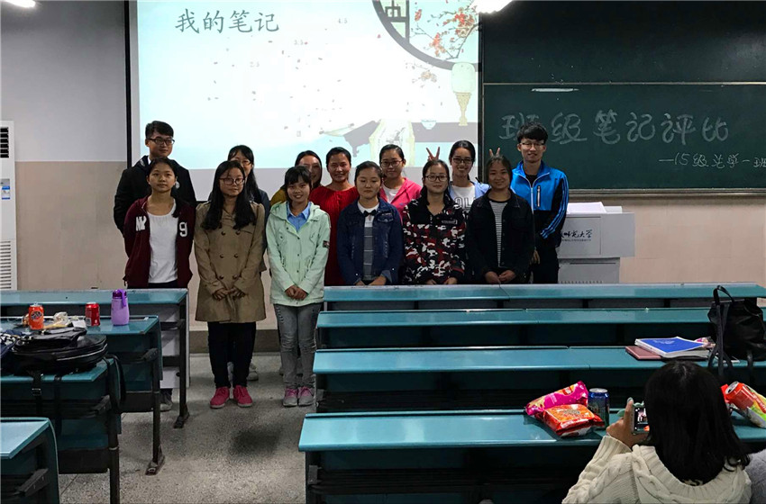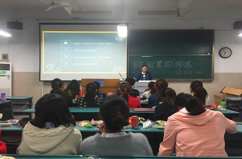 “笔下方策,翰墨流芳”。为全面配合公司学风建设,提高我班同学的学习积极性、主动性,督促同学们形成良好的课堂学习习惯。10月13日晚六点,15级法学一班于固定教室成功开展课堂好笔记评选活动。活动的评委由未参加比赛的班委、团小组组长以及寝室长共同组成,生活委员陈达担任活动主持人。